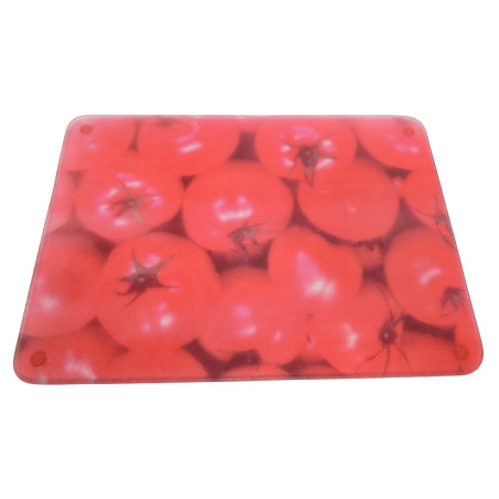 Planche à découper en verre décor tomates, dimensions 40x30 cm.