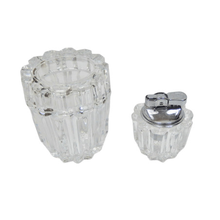Bel ensemble fumeur en cristal comprenant 1 pot à cigarettes avec couvercle et 1 briquet à gaz.