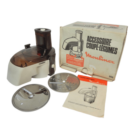 Accessoire complet râpe et coupe-légumes adaptable sur la moulinette type 320 de Moulinex.