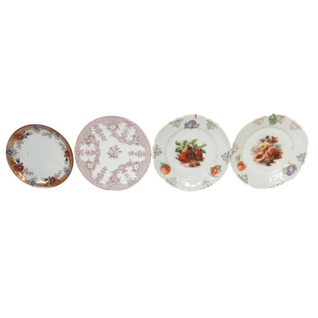 Lot de 4 assiettes anciennes diamètres 15,7 à 18,5 cm, dont 2 Sarreguemines.